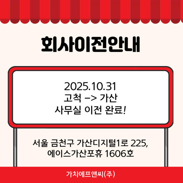 2025년 10월 31일부로 사무실이전이 완료되었습니다.